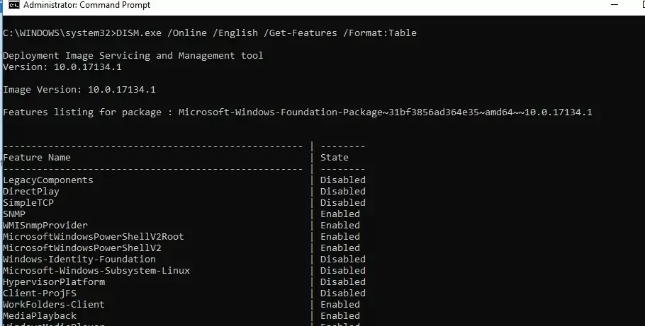 DISM.exe /Online /Disable-Feature /Featurename: ImageName /Remove