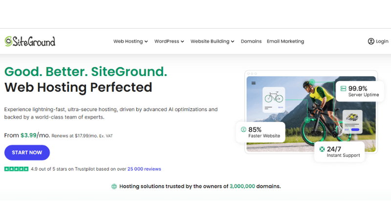 • Easy to Use, Even for Beginners:  No matter your tech skills, SiteGround’s user-friendly interface and helpful tools make managing your website a breeze. They even offer a free drag-and-drop website builder to get you started quickly.