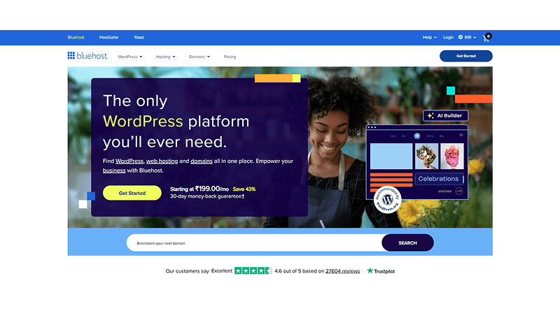 Bluehost Logo ₹199/mo 10 GB Unmetered 24/7