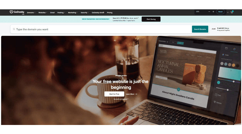 GoDaddy Logo ₹129/mo 20 GB Unmetered 24/7