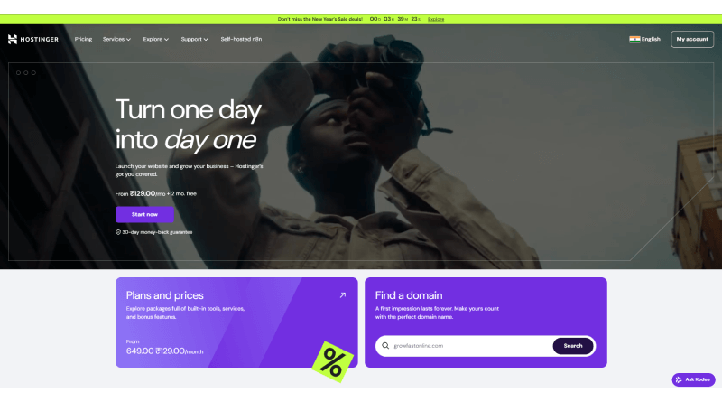 Hostinger Logo ₹69/mo 10 GB Unmetered 24/7