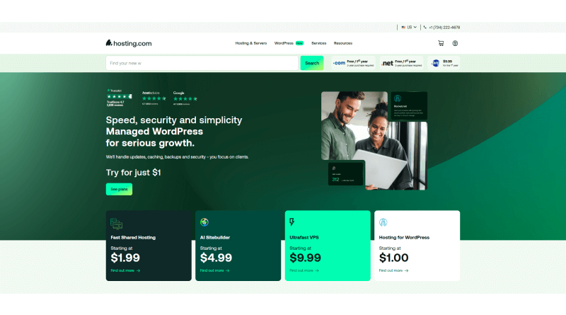 Hosting.com combines performance optimization with budget-friendly shared hosting, WordPress hosting, and Turbo Server optimization!