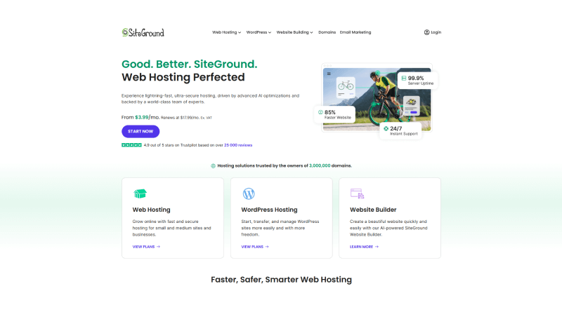 • SiteGround is known for speed optimizations for WordPress and strong security.