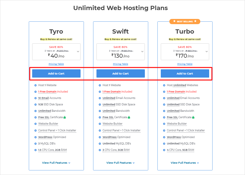 Step 1: Click on the ‘Add to Cart’ button of the hosting plan you want to buy.