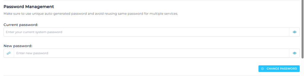 - Click on the Change Password button to save the final changes.