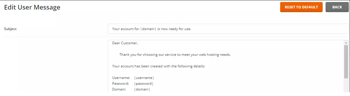 • If you are a server admin and if you wish to create a custom message for the new accounts creation process that can be used by you or all the resellers, put the message in this file: